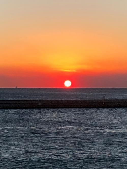 The sun dips below the horizon, casting a brilliant red glow over the Venetian waters. The warm hues blend seamlessly into the sky, creating a mesmerizing contrast with the deep blue sea. A perfect moment captured in time, evoking the romance and tranquility of Venice.